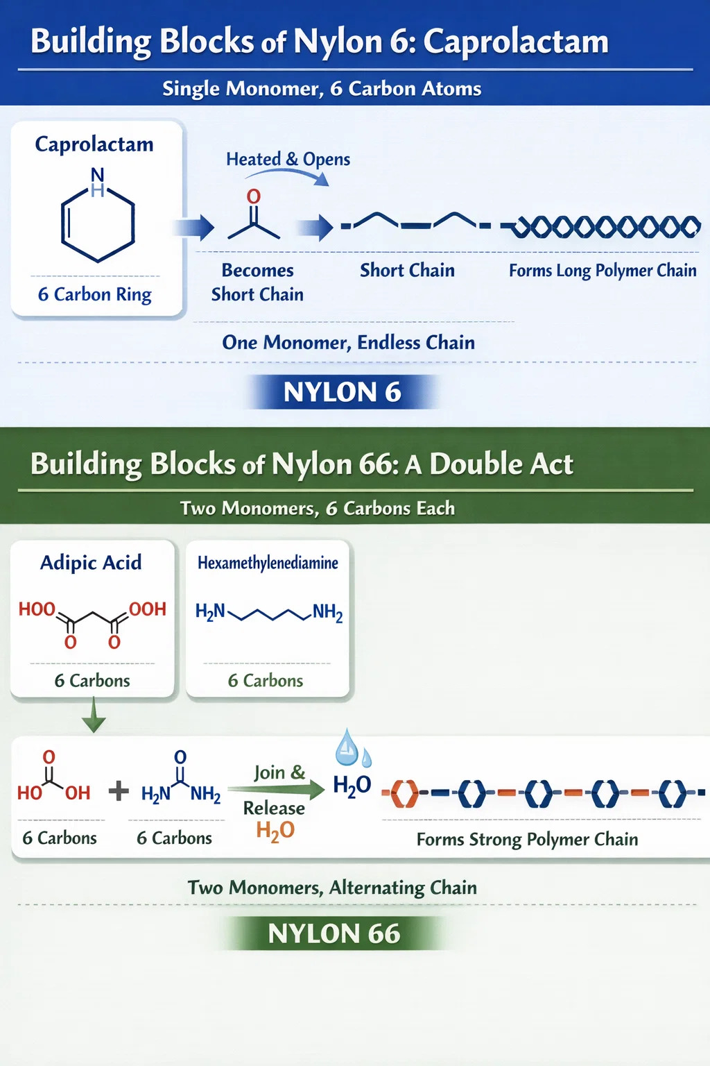 Nylon 66 er som en duet; det kræver to forskellige byggeklodser at forbinde skiftevis.