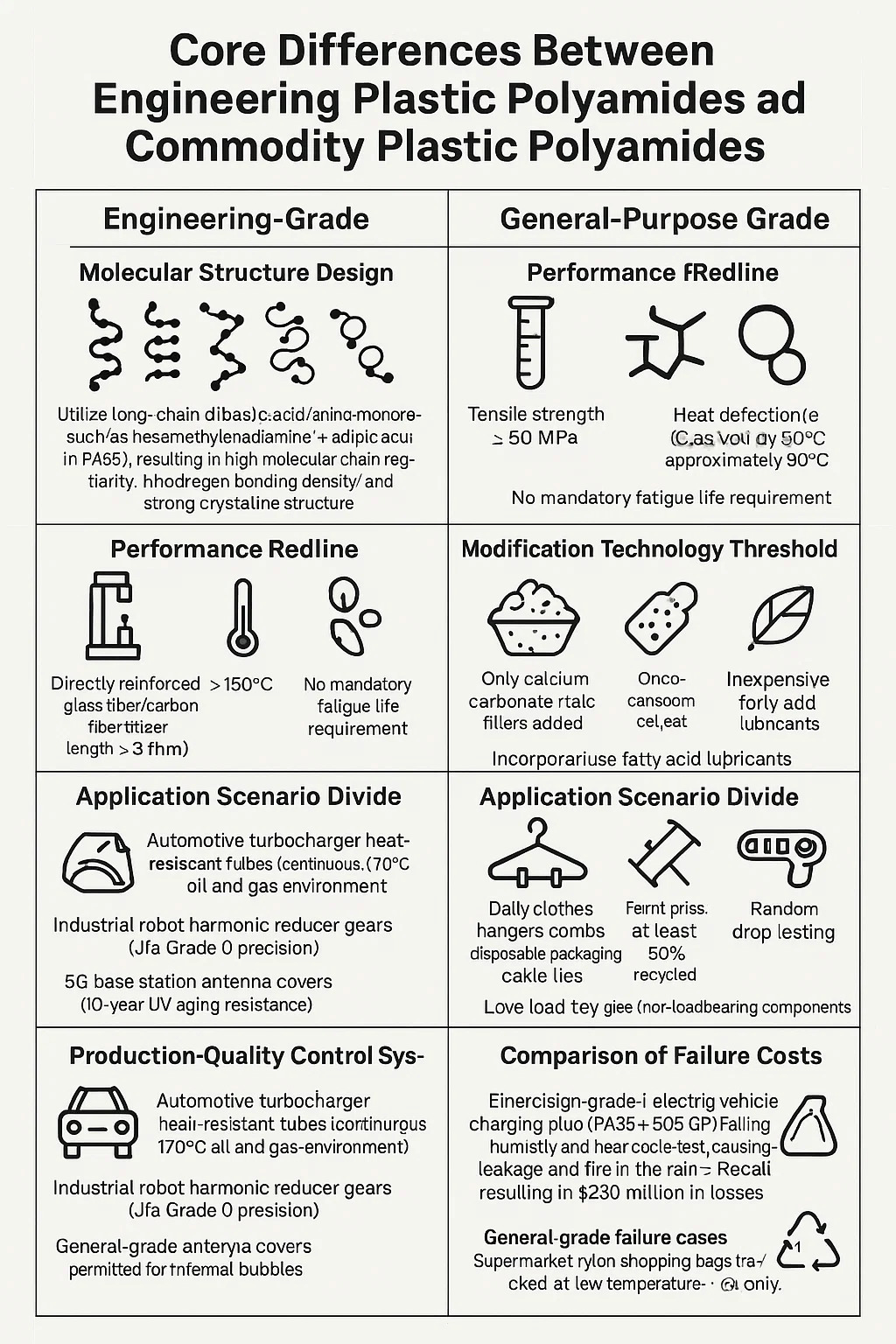 Kerneforskelle mellem Ingeniørpolyamider og commodity plastiske polyamider